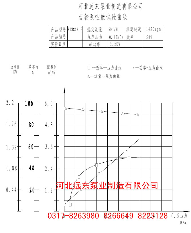 我公司中標(biāo)的KCB83.3油泵共計(jì)10臺(tái),該泵作為汽油輸送泵安裝在管道中,流量為5m3/h,要求壓力: 0.33Mpa,配用電機(jī)為:2.2kw-4.