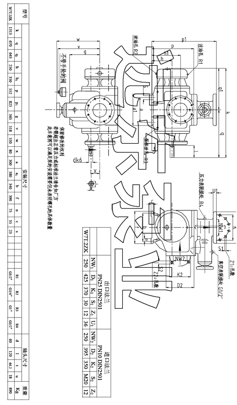 W7T雙螺桿泵安裝尺寸圖