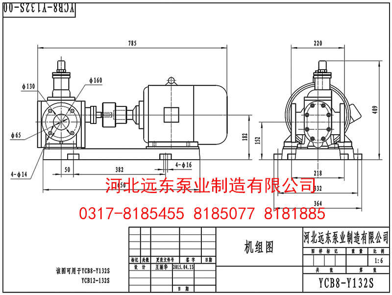YCB8/0.6齒輪泵,流量:8m3/h,壓力:0.6Mpa,吸入真空高度5米,口徑65mm,配電機(jī):Y132S-6 技術(shù)支持: | |||||||||||