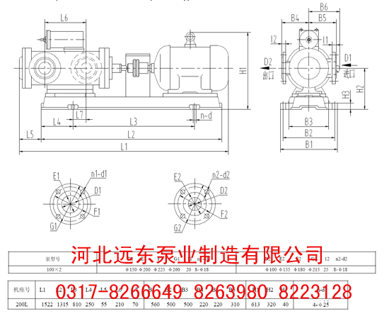 3GR100*2W21三螺桿泵:流量146m3/h,2433L/min,壓力0.6Mpa,轉速1450r/min,軸功率:35kw,電機功率45kw,吸入真空高度4米,進口250mm,出口150mm